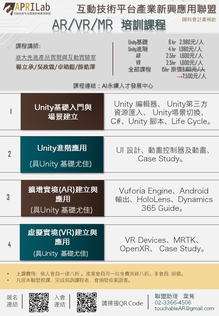 2025年AR/VR線上培訓課程 為了讓您深入掌握AR/VR技術的應用與開發,本課程完整教授 Unity 的介面操作,助您輕鬆進入虛擬世界的創新領域